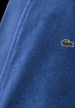 Der markante Bademantel L DEFILE von LACOSTE aus 100% hochwertiger Bio-Baumwolle in schlichten Unifarben lädt Zuhause und nach dem Sauna- oder Wellnessgang zum Wohlfühlen ein. Das Markenzeichen von LACOSTE ist ein Krokodil, welches zu den bekanntesten Logos der Welt gehört. Ein tolles optisches Highlight ist die große Ton-in-Ton Stickerei des Krokodils in Form eines Medaillons auf der Rückseite. Die 25mm große Stickerei auf der linken Brust unterstreicht den qualitäts- und markenbewussten Auftritt. Genießen Sie die warme Umarmung von LACOSTE-Qualität und Komfort.